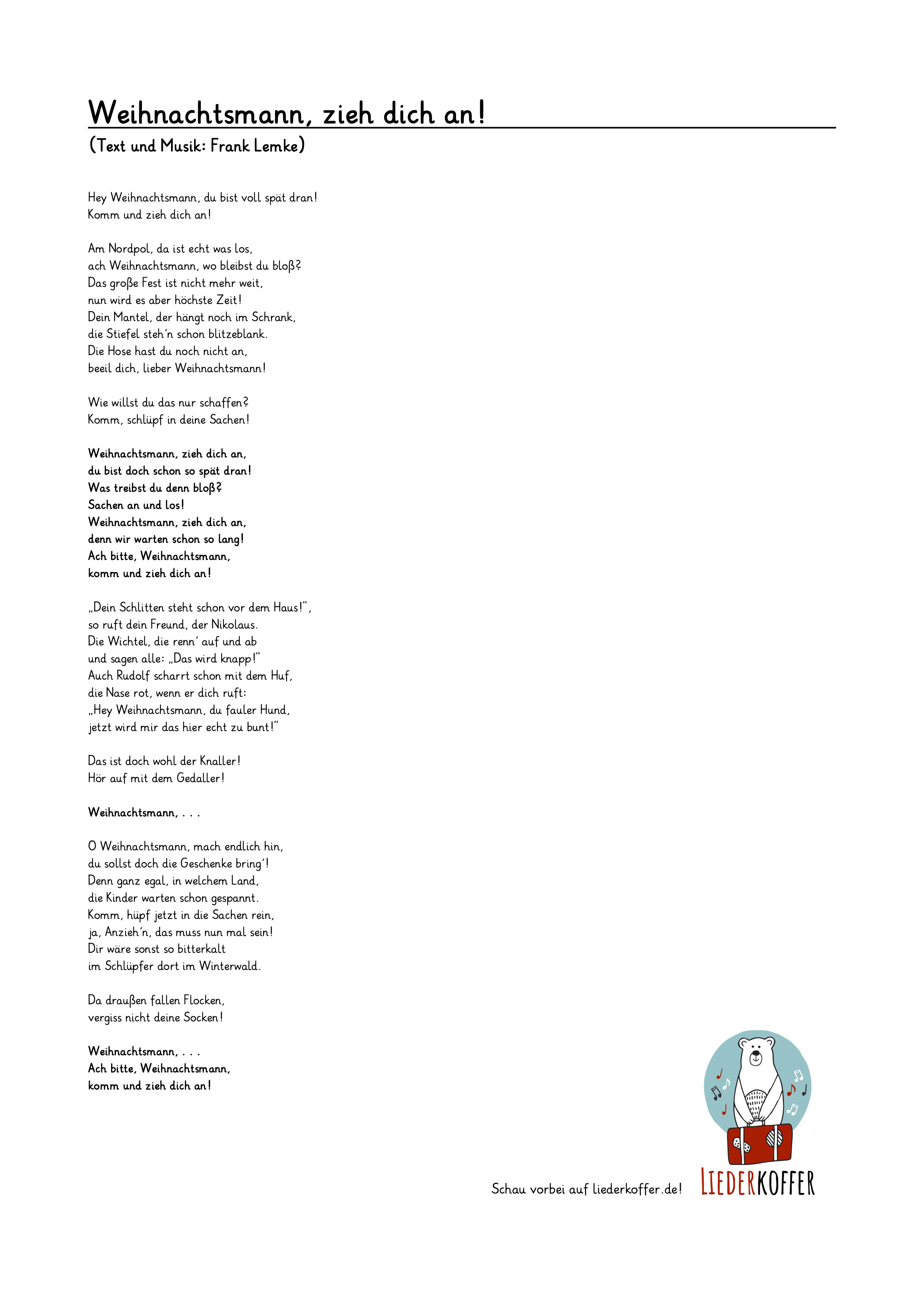„Weihnachtsmann, zieh dich an!“ – ein superwitziger Weihnachtshit für den Liederkoffer